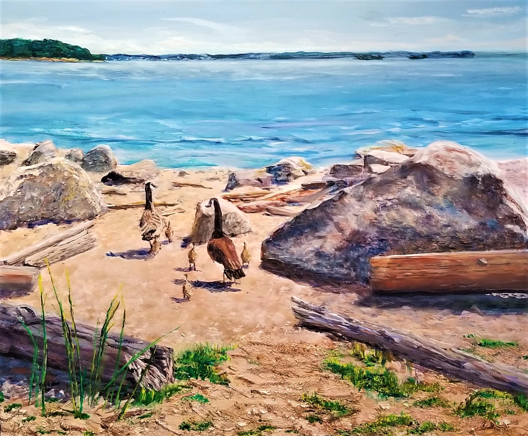 Cathy Roddie is a prolific artist who prefers plein air work, or just painting outside in summer and studio painting in Winter. Born in England she married a Canadian and moved to Canada in 1964. In the earlly years of her marriage the familly moved to all the major Western cities, and from there they explored and loved all the nearby parks and scenery. Cathy can be regularly found at Painters Landing in West Vancouver. Her paintings now hang in several countries around the world. Cathy is self taught and she choses her pallet according to the place, time of year and weather Her joy is to meet the people who buy her work and tell the story of why it means so much to them. Painting at Ambleside is the biggest and best studio in the world.